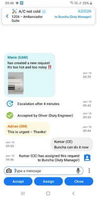 S.A.R.A pitää sinut ajan tasalla reaaliaikaisilla ilmoituksilla ja varmistaa, ettei yksikään tärkeä tehtävä jää huomaamatta. Jokaiselle palvelupyynnölle luodaan oma, omistettu keskusteluryhmä, joka mahdollistaa koko elinkaaren kattavan viestinnän ja dokumentoinnin. Edistykselliset jakelutyönkulut ja automaattiset eskalaatiomekanismit takaavat, että tehtävät ohjautuvat aina oikeille henkilöille oikeaan aikaan, ehkäisten viivästyksiä ja parantaen reagointikykyä. Mobiili-ilmoitukset varmistavat, että tärkeät tiedot tavoittavat tiimisi missä ja milloin tahansa.