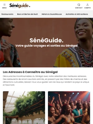 Koe Senegal ennennäkemättömällä tavalla SénéGuiden avulla – täydellinen kumppanisi tutustuessasi tämän lumoavan maan sydämeen. Olipa mielessäsi sitten kulinaarisia nautintoja tai eläväisiä iltoja, SénéGuide avaa sinulle ovia kiehtoviin kokemuksiin. Sukella paikallisten herkkujen maailmaan tai löydä kansainvälisiä makuja laajasta ravintola- ja baarikokoelmastamme, joka tarjoaa vaihtoehtoja jokaiseen makuun ja budjettiin. Kun aurinko laskee, Senegal herää eloon, ja SénéGuide johdattaa sinut kaupungin sykkivimpiin yökerhoihin, jännittävimpiin tapahtumiin ja elävän musiikin iltoihin, jotta voit tanssia aamunkoittoon asti.