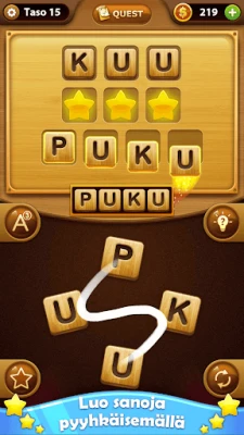 Sukella kiehtovaan sanantäyteiseen seikkailuun, joka koettelee sanavarastoasi ja loogista päättelykykyäsi! Tässä vangitsevassa sanapelissä tehtävänäsi on löytää piilotetut sanat yhdistämällä kirjaimia sujuvasti pyyhkäisemällä. Voit muotoilla sanoja vaaka-, pysty-, vino- tai jopa käänteisessä suunnassa. Täytä jokainen laatta oikealla sanalla ja kerää samalla arvokkaita kolikoita edetäksesi haasteesta toiseen. Se on helppo oppia, mutta tarjoaa jatkuvasti syvenevän haasteen!