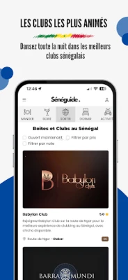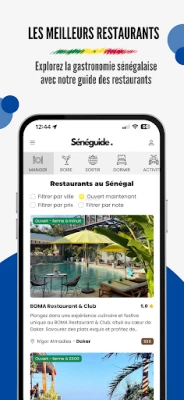 Koe Senegal ennennäkemättömällä tavalla SénéGuiden avulla – täydellinen kumppanisi tutustuessasi tämän lumoavan maan sydämeen. Olipa mielessäsi sitten kulinaarisia nautintoja tai eläväisiä iltoja, SénéGuide avaa sinulle ovia kiehtoviin kokemuksiin. Sukella paikallisten herkkujen maailmaan tai löydä kansainvälisiä makuja laajasta ravintola- ja baarikokoelmastamme, joka tarjoaa vaihtoehtoja jokaiseen makuun ja budjettiin. Kun aurinko laskee, Senegal herää eloon, ja SénéGuide johdattaa sinut kaupungin sykkivimpiin yökerhoihin, jännittävimpiin tapahtumiin ja elävän musiikin iltoihin, jotta voit tanssia aamunkoittoon asti.