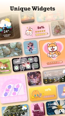 Sukella Themes: Widgets & Icon Changer -sovelluksen laajaan valikoimaan, joka pitää sisällään yli tuhat monipuolista teemaa. Löydä inspiraatiota minimalistisista ja moderneista tyyleistä luonnonläheisiin ja eloisiin kuvioihin – jokaiselle löytyy jotakin. Valitse lumoavien taustakuvien joukosta, jotka saavat kotinäyttösi erottumaan massasta, tai selaa huolellisesti suunniteltuja kuvakepaketteja, jotka antavat sovelluksillesi yhtenäisen ja tyylikkään ulkoasun. Jokainen elementti on luotu harmonisoitumaan valitsemasi teeman kanssa, varmistaen visuaalisesti miellyttävän kokonaisuuden.